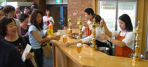 Last Saturday, Hiromi and I spent the early afternoon at the Suntory Brewery in Fuchu, Tokyo. Hiromi called ahead of time and got us reservations for the 10:30 tour; apparently, you might be able to get in without an appointment, but since many of the tours fill up, you might have to wait a while if you don’t get one in advance. The number to call for tours is 042-360-9591.