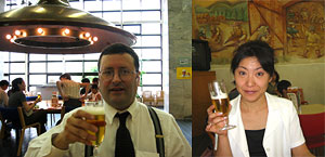 Yes, as a reward for coming in and suffering through the 40-minute beer commercial, you are treated to free samples of their products, including their Diet and Premium beers, if you want them. You only get 15 minutes or so before you are ushered out for the next group to come in, so some guzzling may be required to get full value. Hiromi and I were able to put down three glasses each before the rest period ended, and we didn’t really drink incredibly fast. I could have eked in a fourth one…