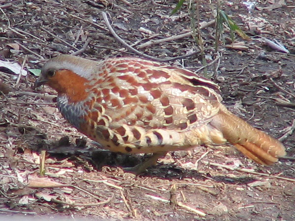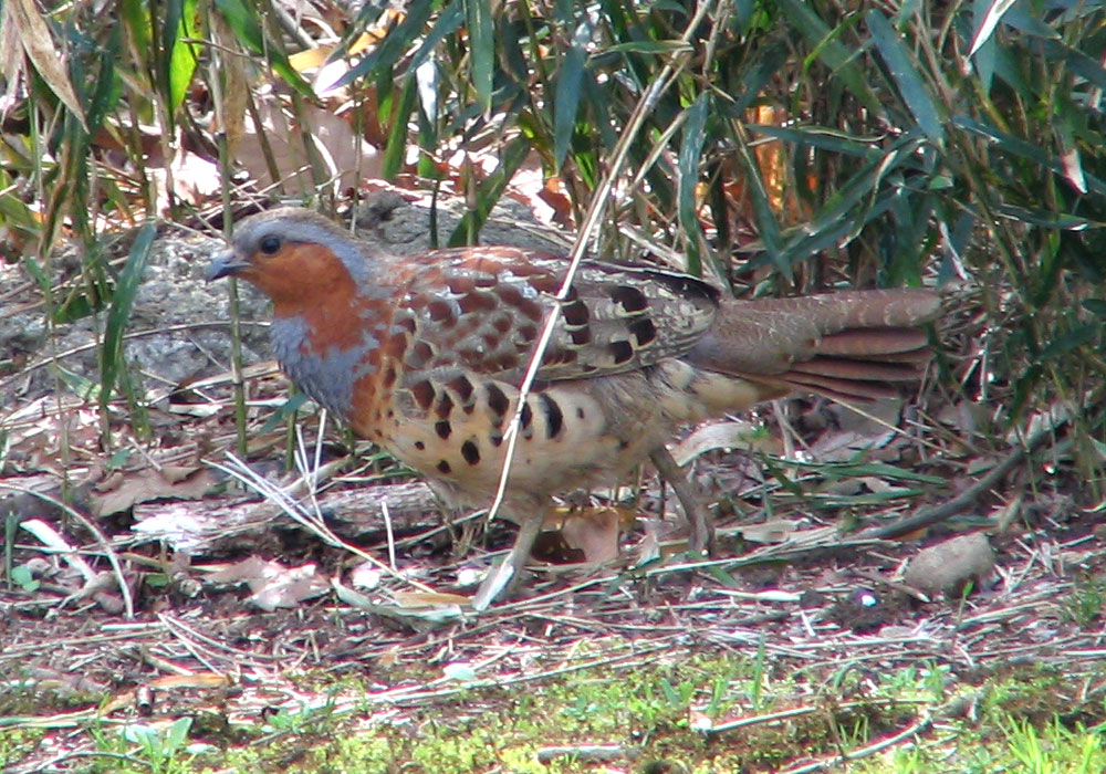 While both new species were quite interesting, the Chinese Bamboo Partridge (Kojukei • コジュケイ) was the more surprising to me. The red and blue coloring around the head and breast gave me a start when I first saw it. I thought it might have been a pigeon at first, because of the general size and the bird’s gait, but those colors made clear that this was a more unusual bird.