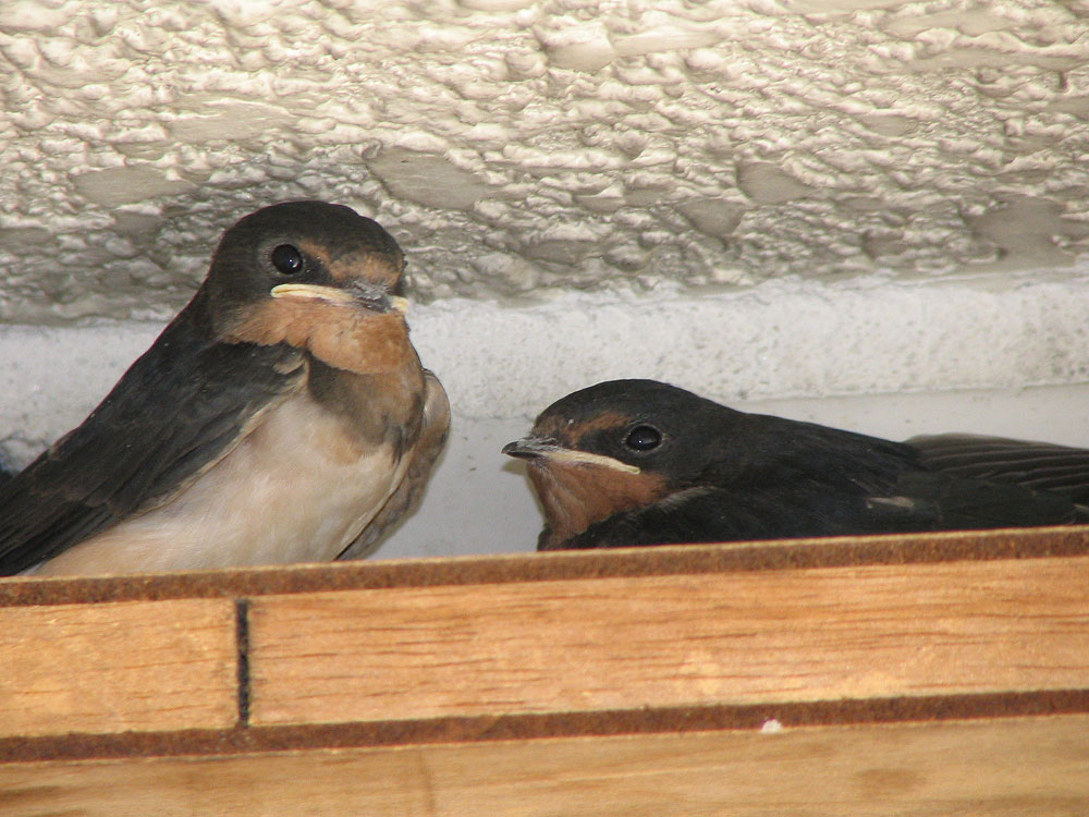 I went out to see if I could find some more birds locally, and got a few. First, I found some baby Barn Swallows in the doorway of someone’s home. The babies were just resting there on a sill near the ceiling of the porch, right out there, as if being just a few feet from visitors to the front door was no big deal. Got a nice close-up of two of the three: