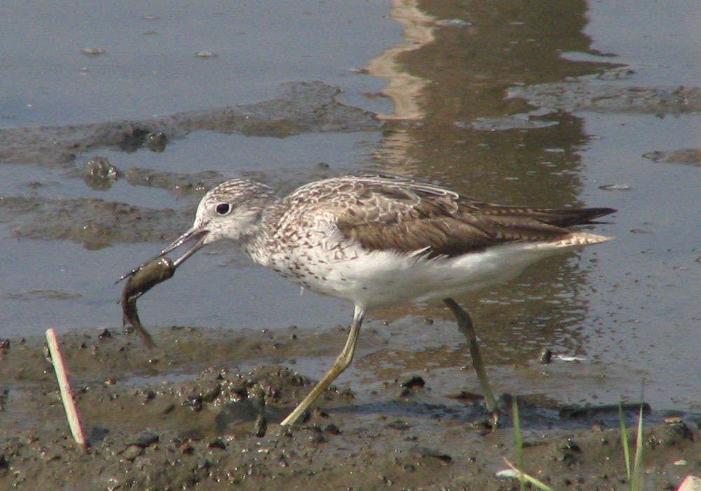 Then the Greenshank (Ao-ashi-shigi (literally, green-legged sandpiper) • アオアシシギ), easier to spot with its plumage and leg color:
