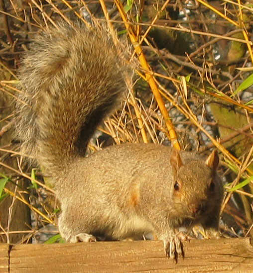 Cute little buggers, they are. Click on the image below to see a larger close-up of the furry little backyard interloper.