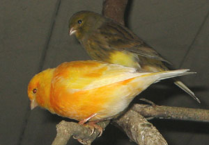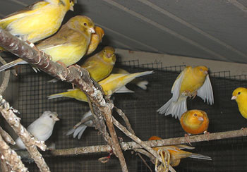 best way to thin the flock, so to speak. He used to be able to trade and deal with a canary dealer in the area, but he went out of business, so now he sells them to friends and pet stores. And by keeping the color and breed strains he likes, he’s been able to produce some very vivid yellow and orange birds in there.