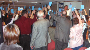 The Iowa caucus had a turnout above 124,000, more than double the number of people who attended in 2000. In New Hampshire, a record 219,000 Democrats came out to vote, more than turned out in 1992, the last high-turnout year; turnout this time was about 40% higher than in 2000. New Mexico saw double the expected turnout, and numbers in Nevada were several times greater than previous elections. Michigan and Wisconsin both saw the second-highest turnout ever, with Wisconsin getting its highest turnout since 1980. I saw the same thing here in Japan–the number of attendees for the Tokyo caucus for Democrats Abroad was four times higher than 2000. In France, they predicted a record turnout of 300, and more than double that number showed up.