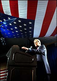My feeling is that he didn’t go quite as far as I did, but he is absolutely in the right direction. This is a feeling that many Democrats have in regard to Kerry’s public positions–many of us feel he should be taking a much bolder stance–but it also must be understood that this election could stand on the edge of a knife, and as distasteful as it might be sometimes, candidates cannot always go too far out on a limb.